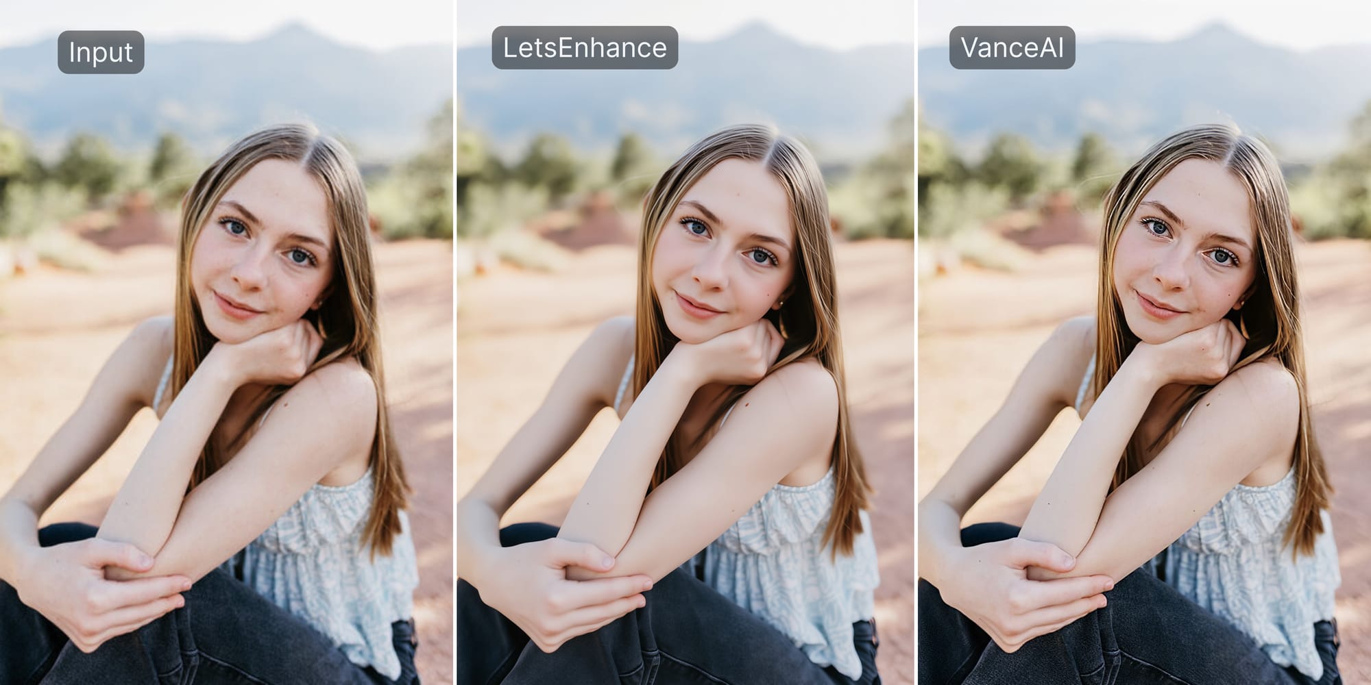 - Portraits: For client headshots or large prints where every eyelash matters, LetsEnhance gave us the most natural, high-detail faces with clean skin and crisp eyes/hair. If you’re moving quickly through casual or social portraits, VanceAI is the faster path and still looks great; its gentle clean-up can flatter skin. Both platforms offer face enhancement.