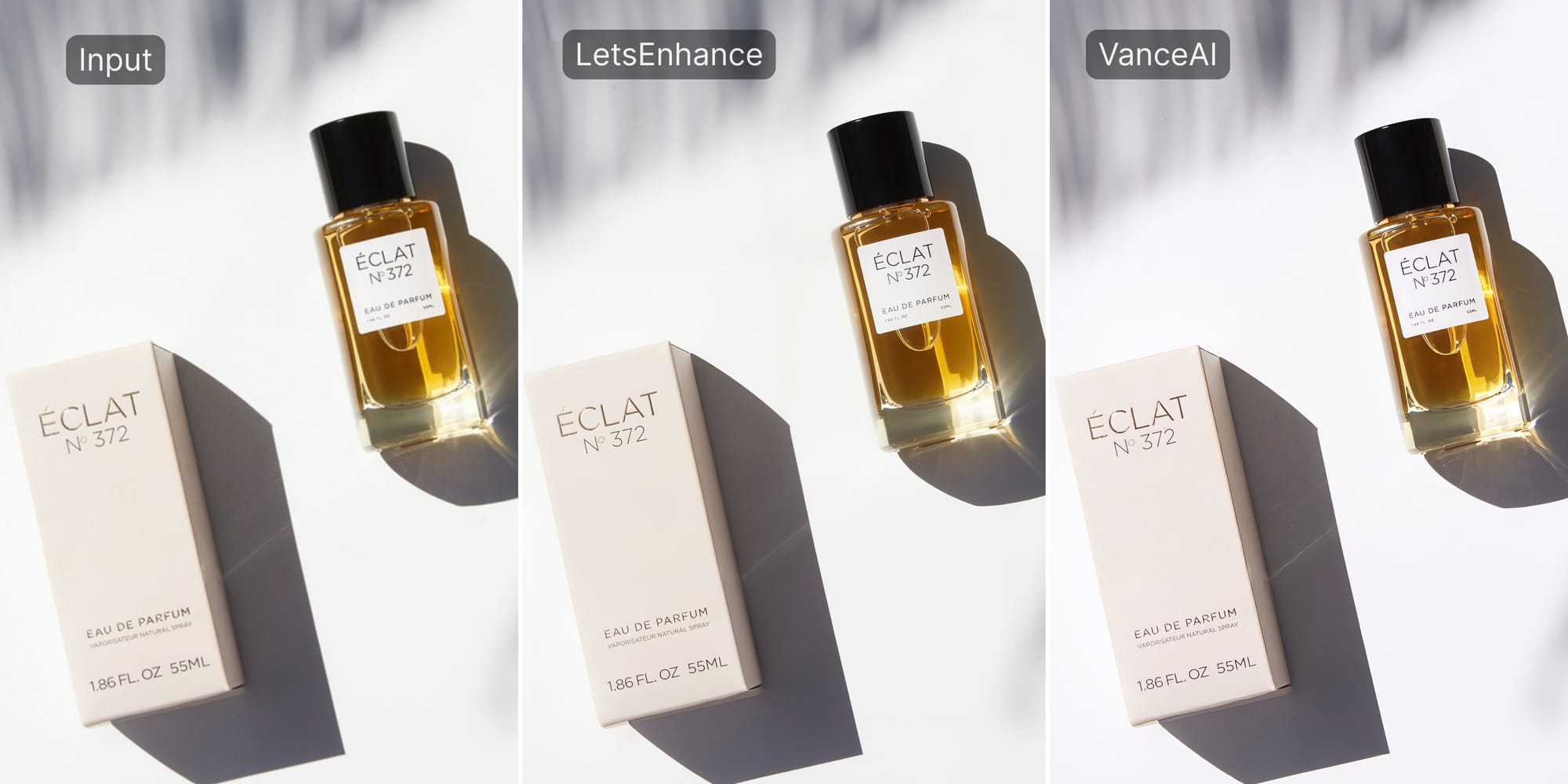 On the positive side, VanceAI managed to enhance overall image crispness without blowing out the contrast: the product’s shadows and lighting remained true to the original, much like LetsEnhance’s output.