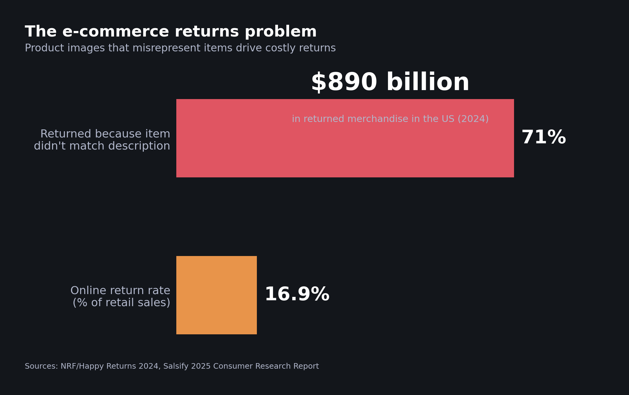 Returns are one of e-commerce's most expensive problems. According to the NRF/Happy Returns 2024 report, online return rates hit 16.9% of total retail sales in 2024, representing roughly $890 billion in returned merchandise in the US alone.