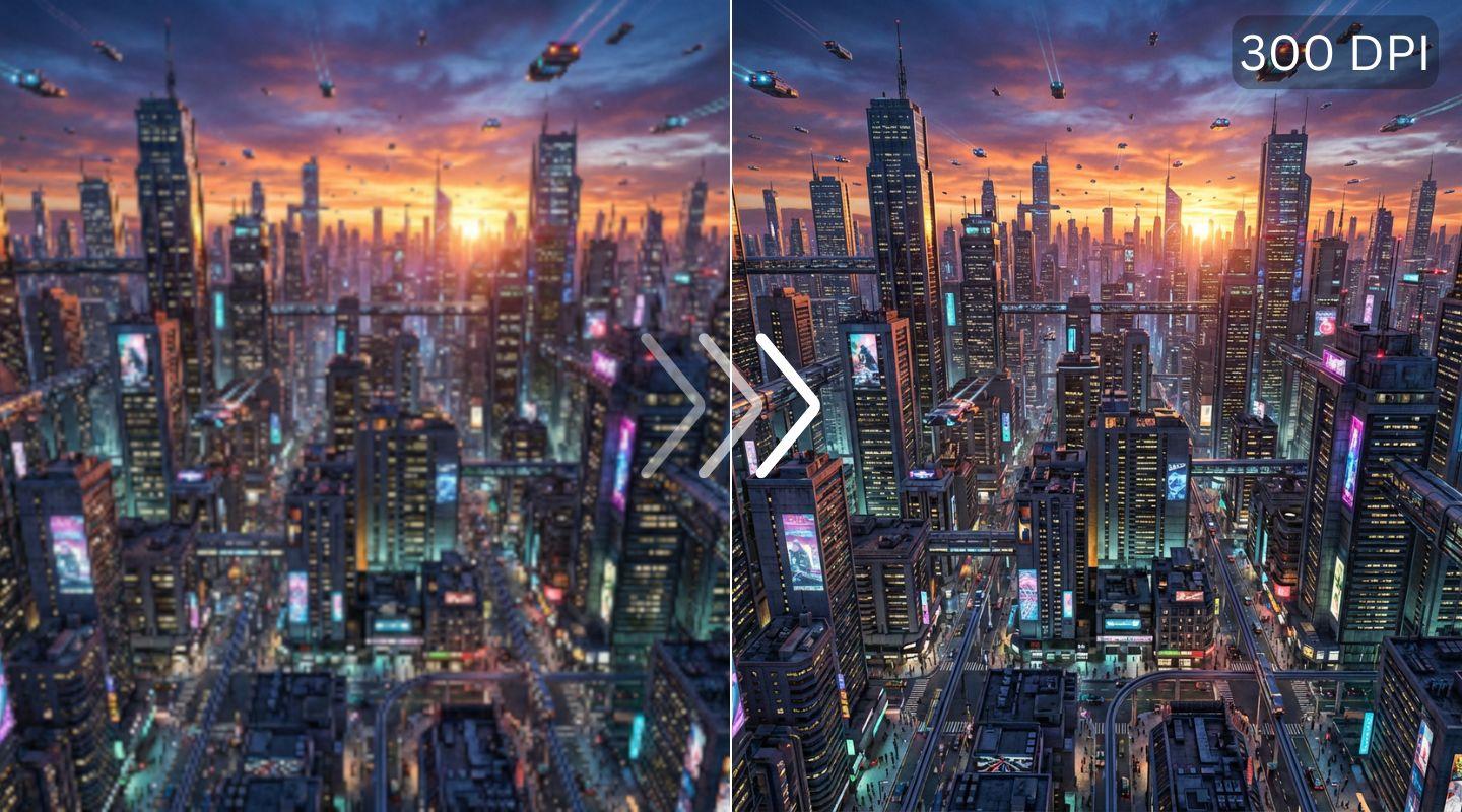 Midjourney, Stable Diffusion, DALL-E outputs need cleanup. Enhance soft areas, remove artifacts, and upscale to 4K or 8K for printing or commercial use. Professional results from AI-generated starting points.
